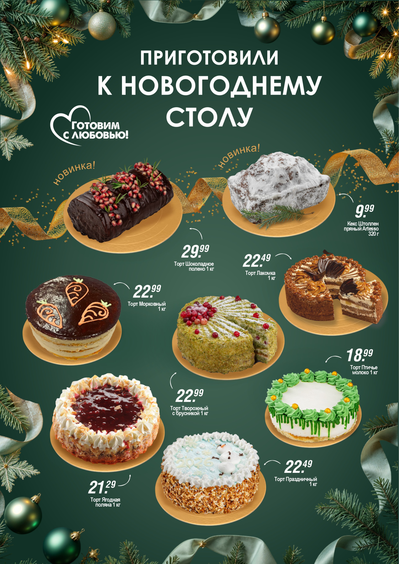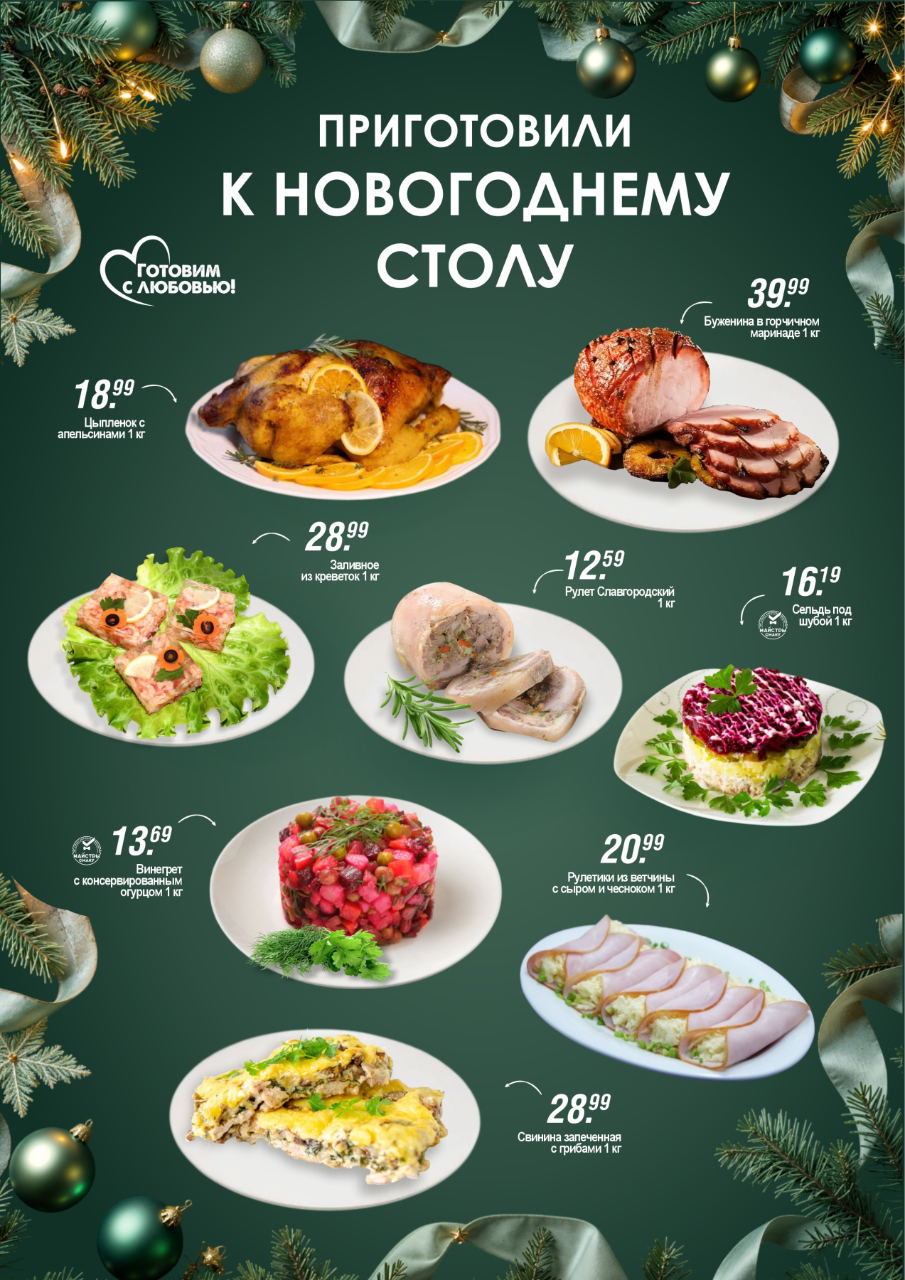 В новогоднем меню ГИППО более несколько десятков блюд: от готовой кулинарии до полуфабрикатов, которые требуют минимального количества усилий, чтобы приготовить их дома. А также тематические торты и сладости, которые украсят любой праздник и придутся по вкусу всем членам семьи.
